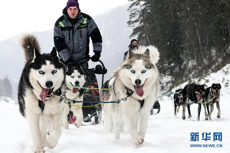 当地时间3月4日,俄罗斯克拉斯诺亚尔斯克,当地举行10公里狗拉雪橇比赛。(图片来源:视觉中国)