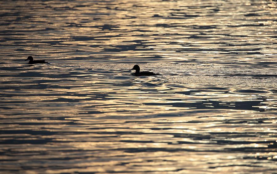 当地时间3月10日,白俄罗斯明斯克,Zaslawskaya水库的日落美景。(图片来源:视觉中国)