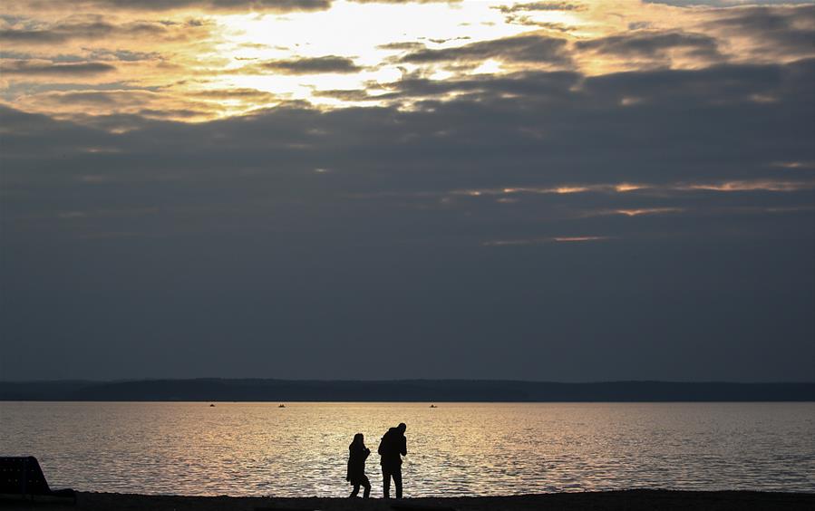 当地时间3月10日,白俄罗斯明斯克,Zaslawskaya水库的日落美景。(图片来源:视觉中国)