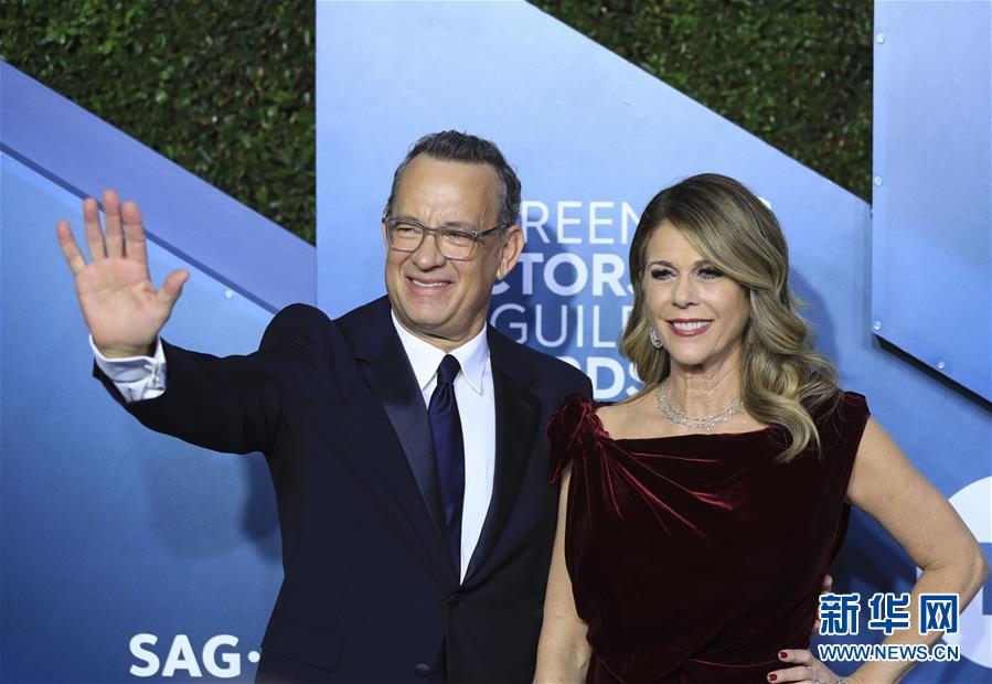 这是1月19日美国影星汤姆·汉克斯与妻子在美国洛杉矶亮相第26届美国影视演员协会奖红毯时的资料照片。新华社记者 李颖 摄