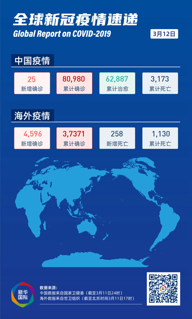 意大利全国范围实施“封城”;法国、西班牙确诊病例突破两千;伊朗启动国家动员计划……世卫组织报告显示,截至北京时间11日17时,中国以外有113个国家和地区报告确诊病例37371例,死亡1130例。