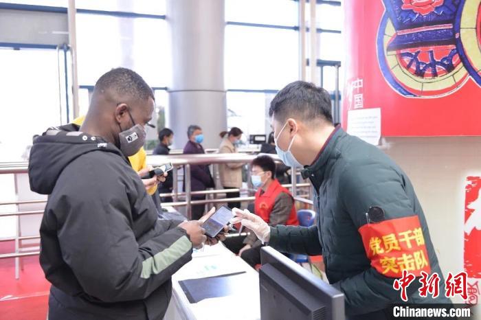 外商在商城集团党员志愿者的引导下,办理进入市场的“通行证” 义乌宣传部提供