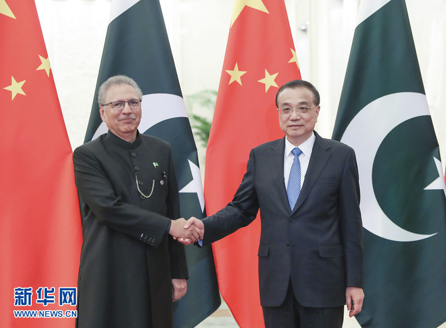 李克强表示,巴基斯坦是中国的“铁杆”朋友,不论国际风云如何变幻,中巴友谊始终坚如磐石、牢不可破。中方高度重视中巴关系,习近平主席将同总统先生举行会谈,规划两国关系未来发展。中国发生新冠肺炎疫情后,巴基斯坦第一时间向中国人民伸出援手。当前中巴都面临疫情挑战,中方愿同巴方分享防控经验,向巴方提供急需的抗疫物资,联手应对共同挑战。我们也愿同巴方深化各领域互利合作,推进中巴经济走廊、产业园区等大项目建设,继续帮助巴方开展蝗灾防治,加强在国际和地区事务中的合作,促进两国和地区的和平与繁荣。