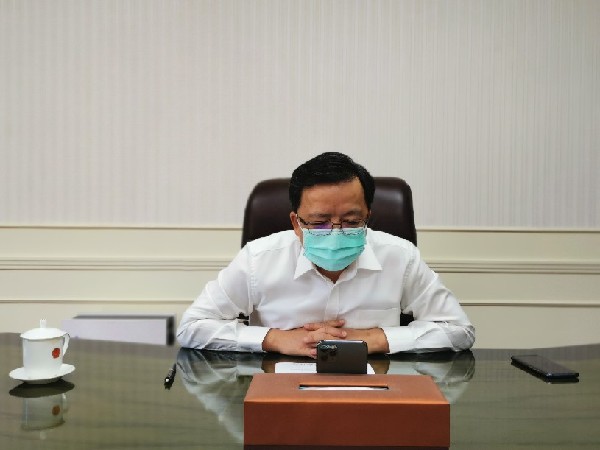 图为中国驻菲律宾大使黄溪连在参加视频会议。(图片由中国驻菲大使馆提供)
