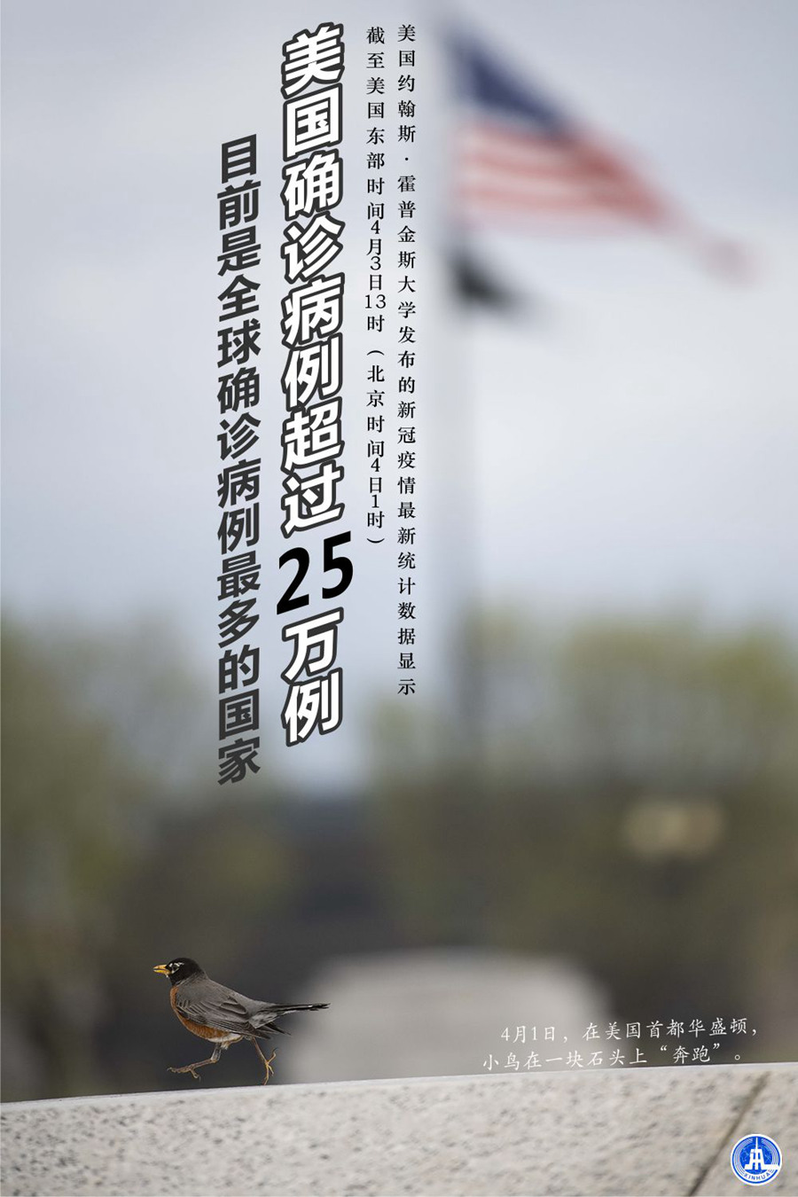 新华社纽约4月3日电 美国约翰斯·霍普金斯大学3日发布的新冠疫情最新统计数据显示,美国确诊病例超过25万例。美国目前是全球确诊病例最多的国家。
