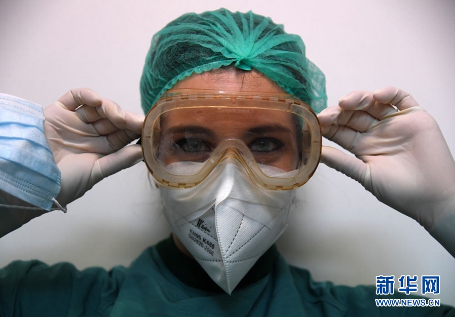 4月12日,在意大利首都罗马,圣斯皮里托医院的护士在进入新冠肺炎病区前穿戴防护设备。新华社发(阿尔贝托·林格利亚摄)