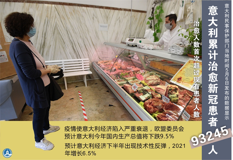 新华社罗马5月6日电(记者陈占杰)意大利民事保护部门6日发布的数据显示,意大利累计治愈新冠患者93245人,治愈人数首次超过现有患者人数。