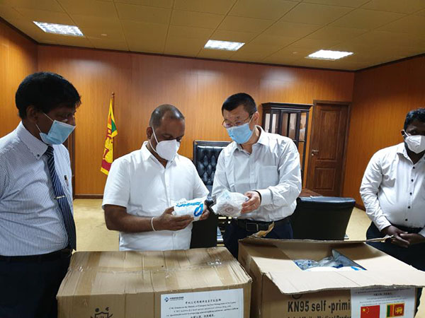 图为中机公司向斯里兰卡民用交通部捐赠防疫物资。(图片由中机公司提供)