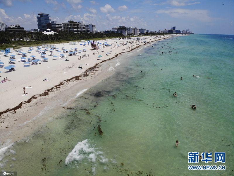 美国迈阿密海滩开放 吸引游客享受日光浴