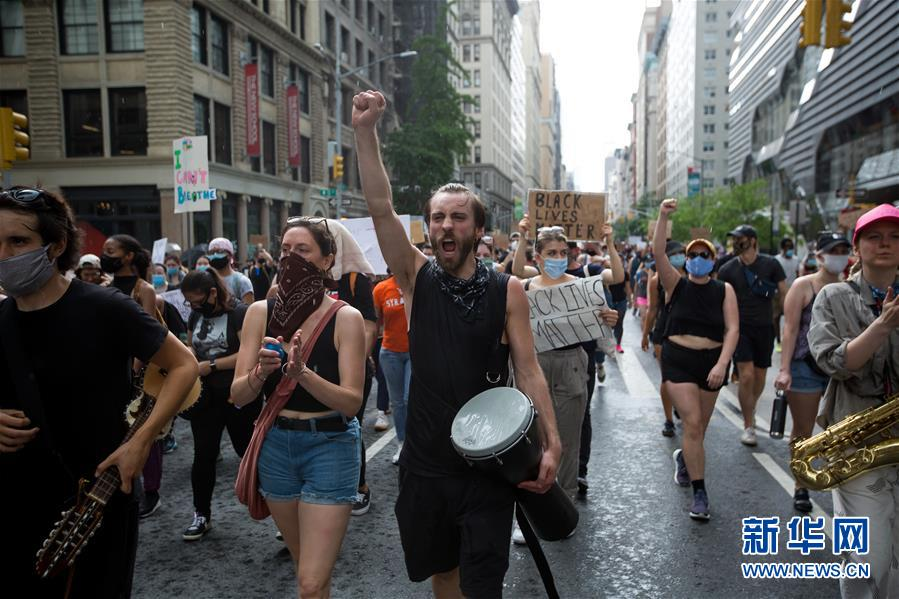 6月6日,人们在美国纽约街头抗议。 新华社发(郭克 摄)