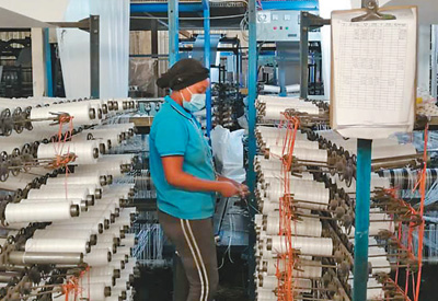 南非硕丰集团的无纺布生产车间,一名当地女工正在整理纱线。(记者 李滢嫣 摄)