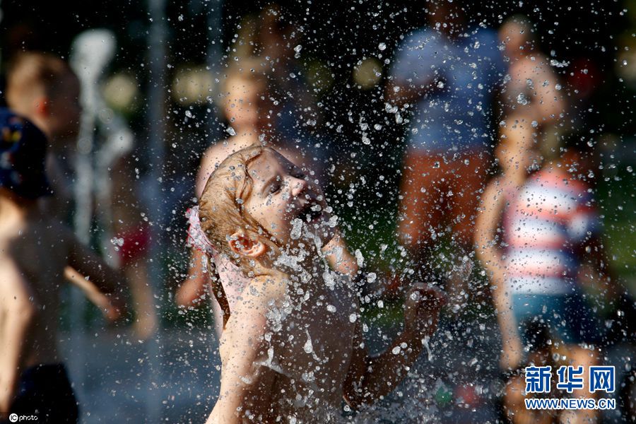 立陶宛迎来高温 萌娃喷泉戏水享清凉
