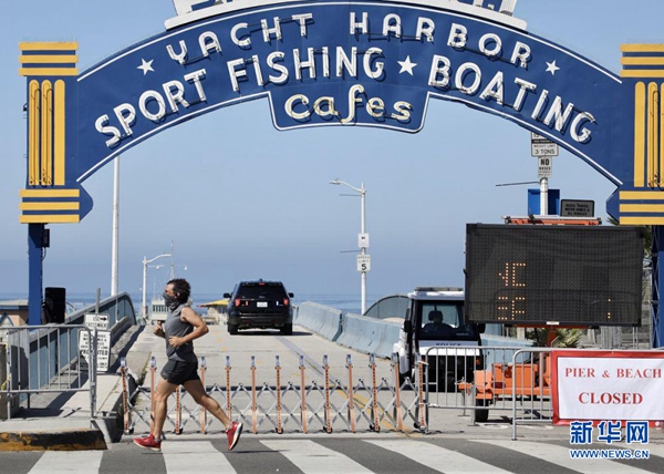 这是7月4日在美国洛杉矶县拍摄的关闭的圣莫尼卡海滩。新华社发
