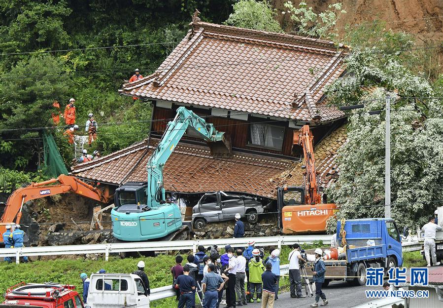 日本多地出现洪灾 房屋倒塌道路被淹