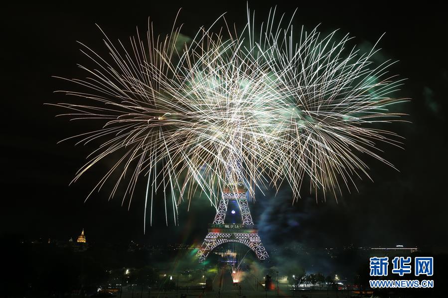 法国庆祝国庆日 埃菲尔铁塔周围烟花绽放