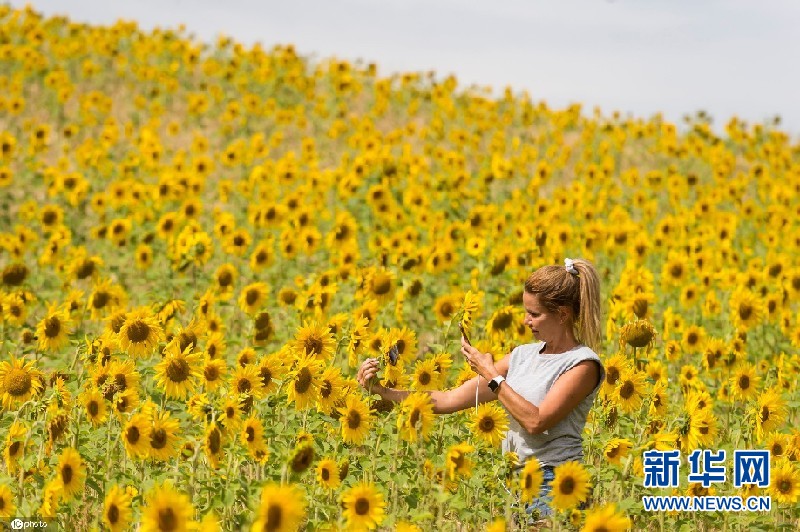 当地时间8月5日,英国赫特福德郡,当地向日葵花田盛放,吸引众多游客赏花拍照。(图片来源:东方IC)