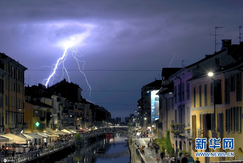 意大利米兰迎来暴风雨和雷电天气