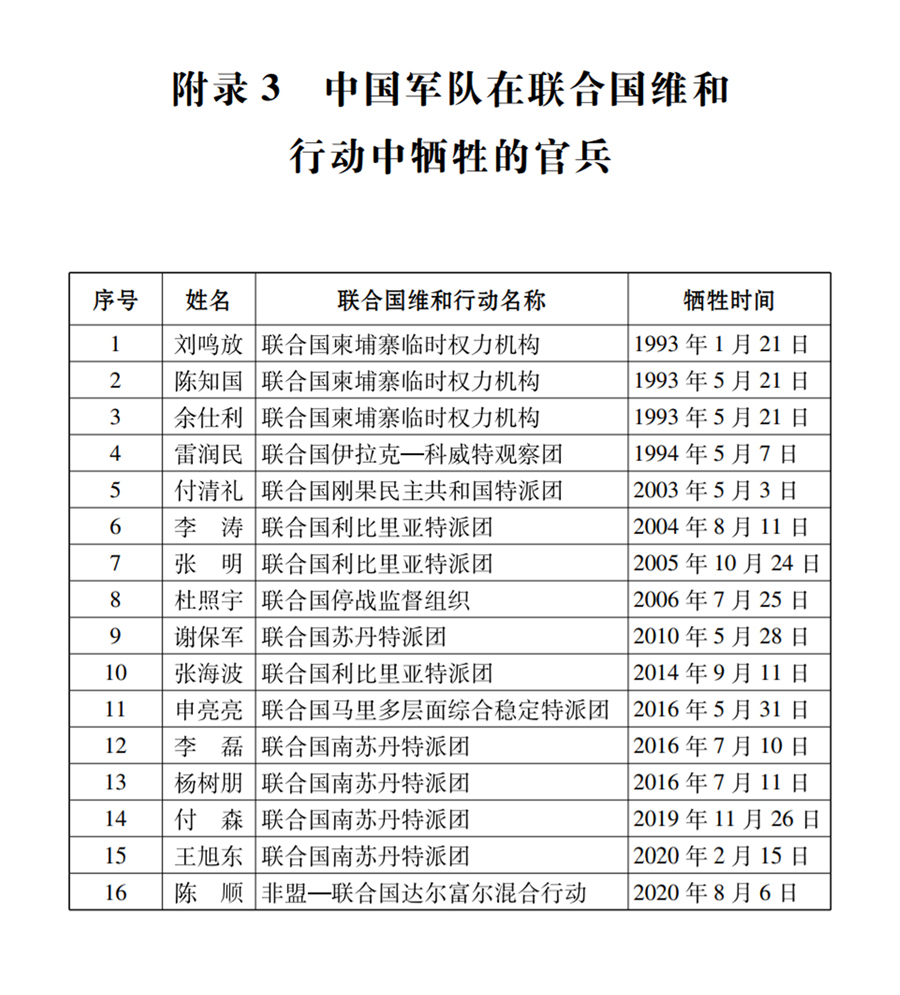 附录3 中国军队在联合国维和行动中牺牲的官兵