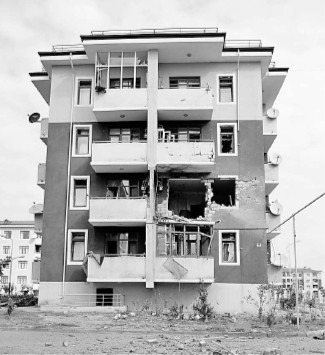 图为9月29日在阿塞拜疆临近纳卡边境的塔塔尔地区拍摄的在冲突中受损的房屋。新华社发