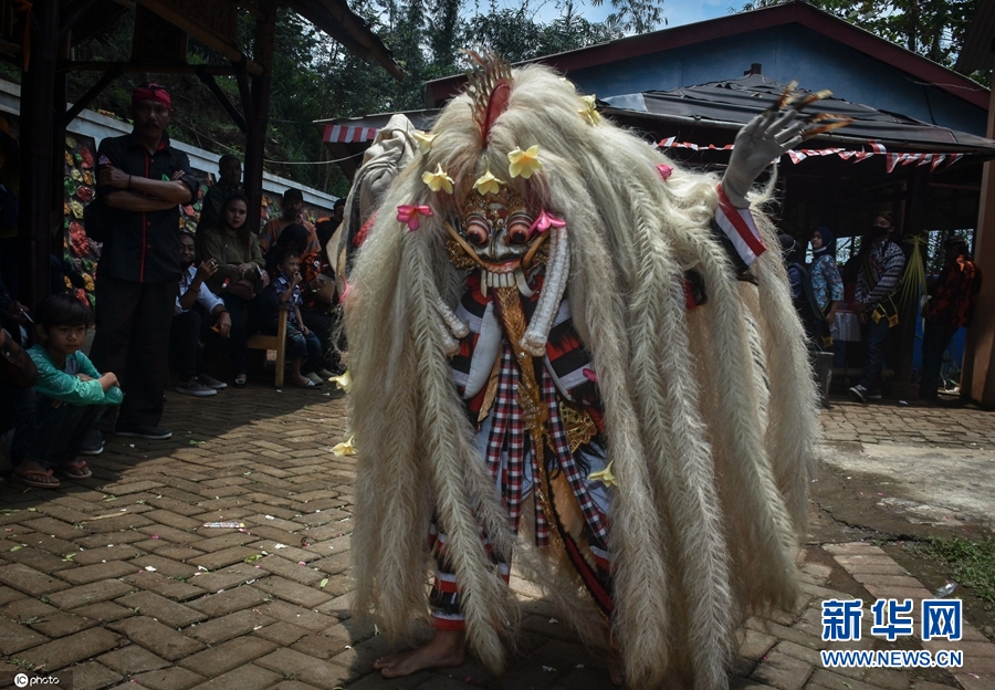当地时间10月24日,印度尼西亚东爪哇玛琅,当地举行传统的巴龙舞表演,以向神灵表达感激之情。(图片来源:东方IC)