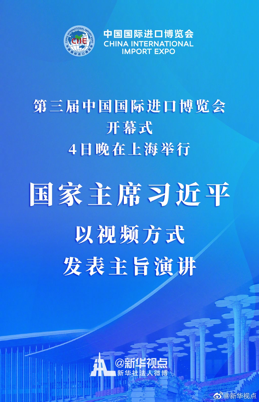 第三届中国国际进口博览会开幕式4日晚在上海举行,国家主席习近平以视频方式发表主旨演讲。