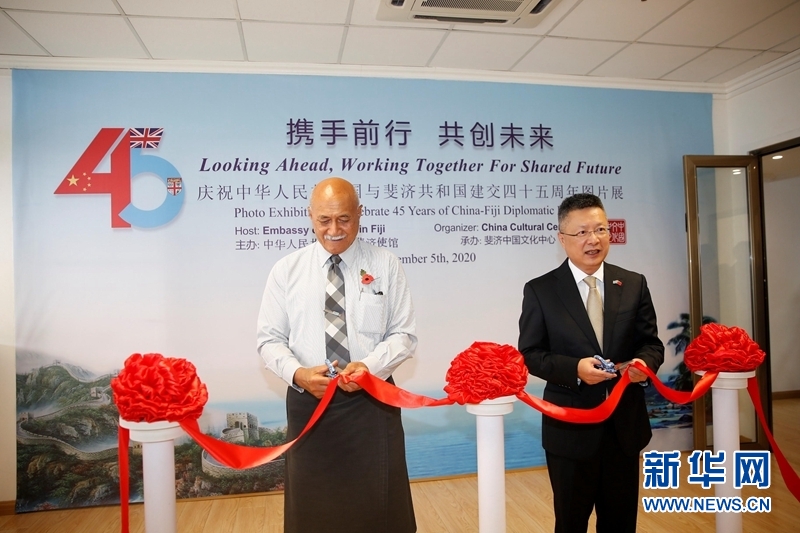 为庆祝中国和斐济建交45周年,中国驻斐济大使馆11月5日携手斐济中国文化中心举办题为《携手前行共创未来》的图片展,斐济总统孔罗特、斐济政府官员及当地华侨华人代表等应邀出席。