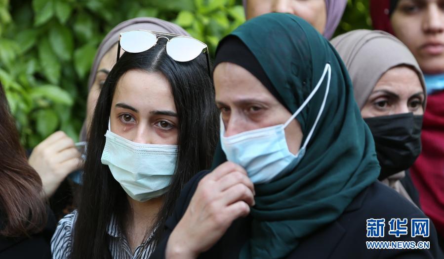 11月11日,在约旦河西岸城市杰里科,人们在巴勒斯坦高官埃雷卡特的葬礼上哭泣。