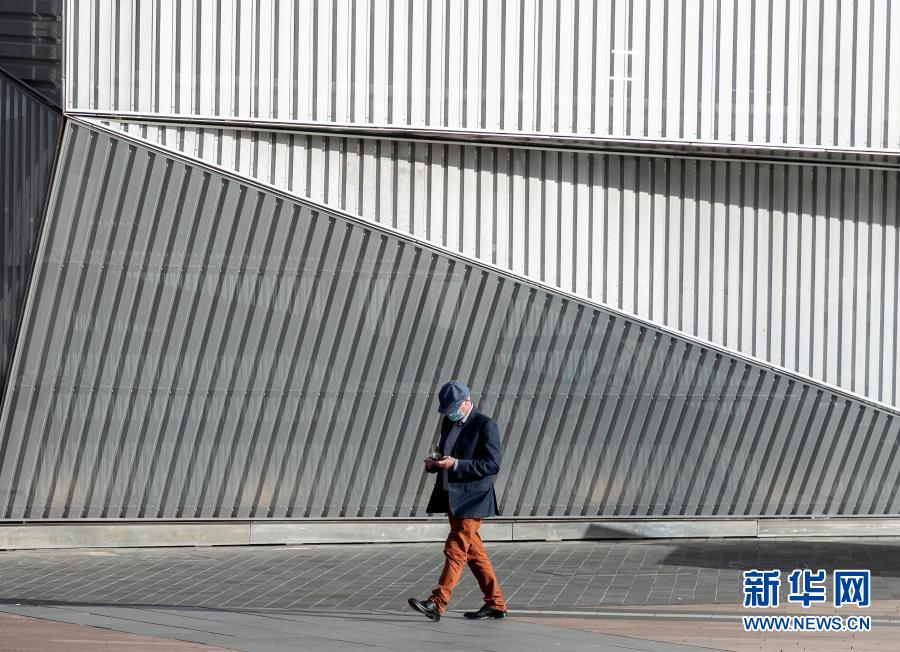 11月12日,一名戴口罩的男子在英国伦敦街头行走。