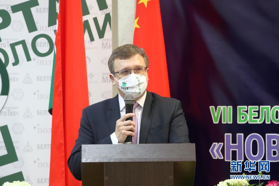 11月17日,在白俄罗斯首都明斯克,白俄罗斯国家科技委员会主席舒米林在第七届中白青年创新论坛开幕式上致辞。