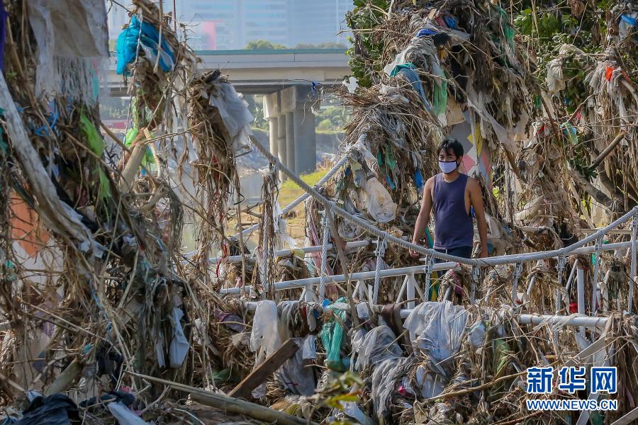 11月19日,一名男子在菲律宾马里基纳经过灾后的桥梁。