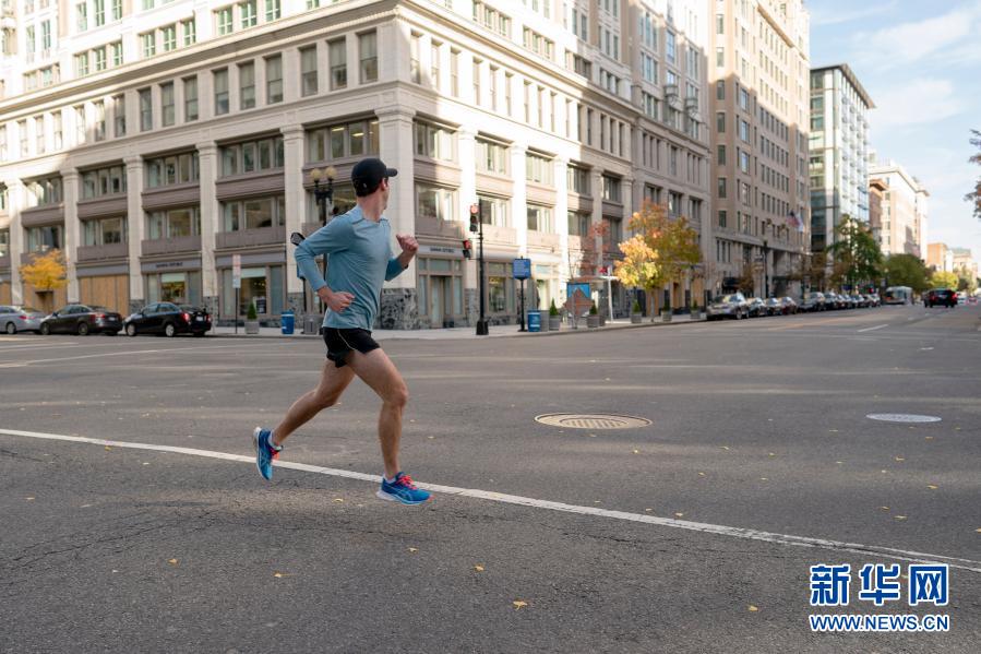 11月19日,在美国华盛顿,一名男子跑步经过车辆稀少的路口。新华社记者 刘杰 摄