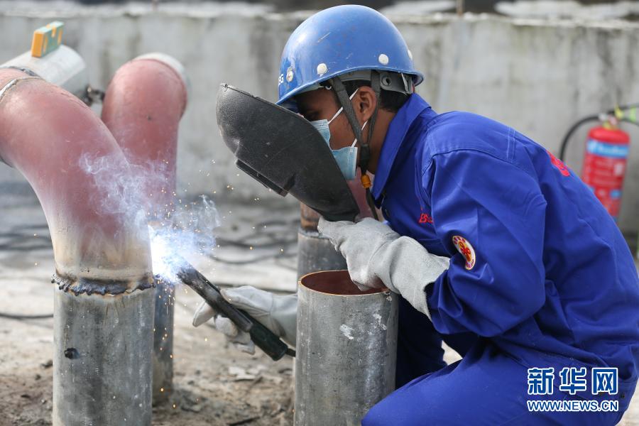 觉泰昂是正在接受项目组培训的当地工人之一。他刚来项目组上班时仅是一名普通的安装工,因为他对电焊感兴趣,又掌握一些基本的焊接知识,项目组的师傅就开始教他做些简单的焊接工作。教觉泰昂电焊技能的师傅田志章说:“提前帮他调好尺寸,接好焊点,每焊两厘米左右就帮他检查一下,一般的支架和管道焊接他已经能做得很好。”