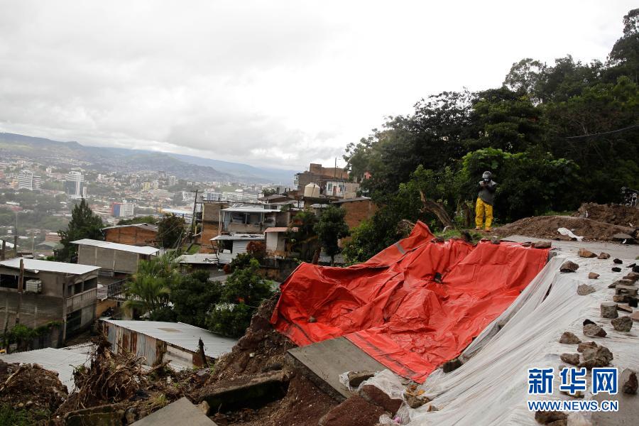 11月19日,在洪都拉斯特古西加尔巴,一名路人查看受灾现场。