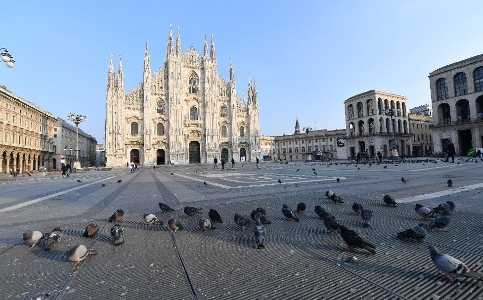 11月6日,在意大利米兰,大教堂前行人稀少。新华社发(阿尔贝托·林格利亚 摄)