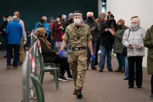11月6日,一名军人在英国利物浦的一处新冠病毒检测点协助当地居民检测。当日,利物浦开展全城范围新冠病毒检测。这是英国首次在城市开展全城范围的大规模新冠检测。新华社发(乔恩·休珀摄)