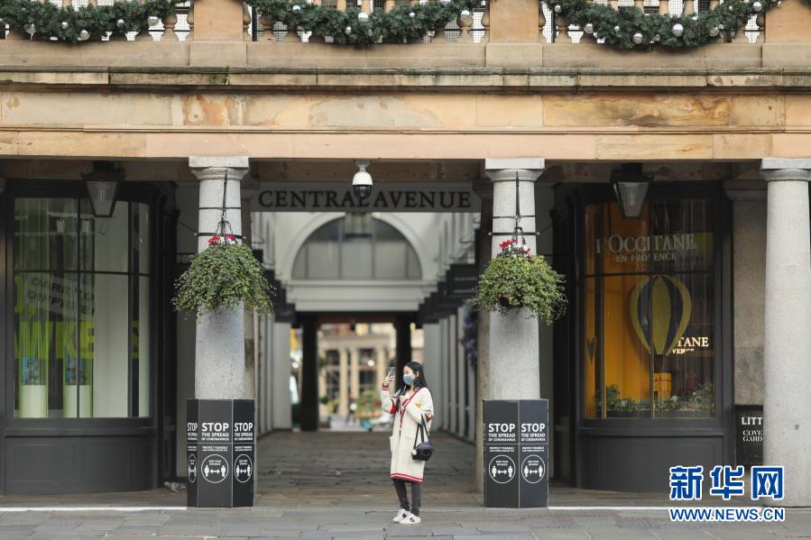 11月23日,一名女子在英国伦敦考文特花园市场使用手机。
