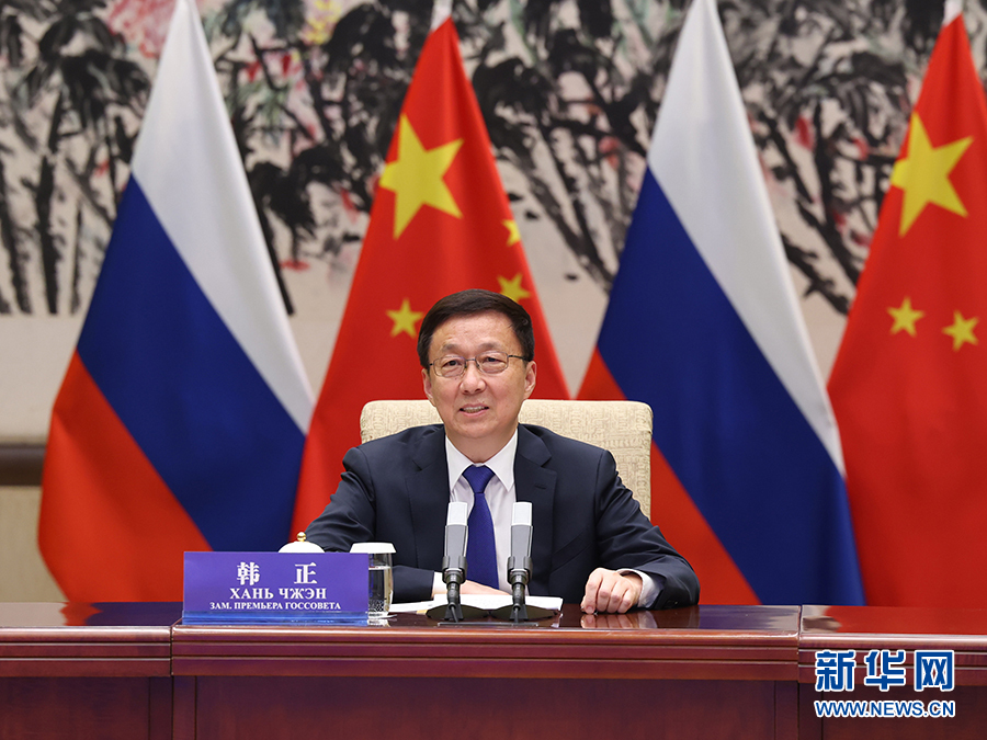 韩正表示,在习近平主席和普京总统亲自关注和推动下,中俄能源合作始终保持着积极发展的良好态势。面对新冠肺炎疫情全球蔓延和世界经济下滑的严峻挑战,两国能源合作展现出强大的韧性和生命力,能源贸易大幅增长,重大合作项目稳步推进,新合作成果不断涌现。中方愿与俄方一道,以新时代中俄全面战略协作伙伴关系为引领,认真落实好两国元首重要共识,推动中俄能源合作积极向前发展,取得更多务实成果。