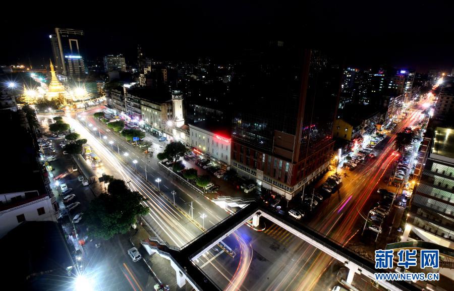 这是2018年8月21日拍摄的缅甸仰光夜景。