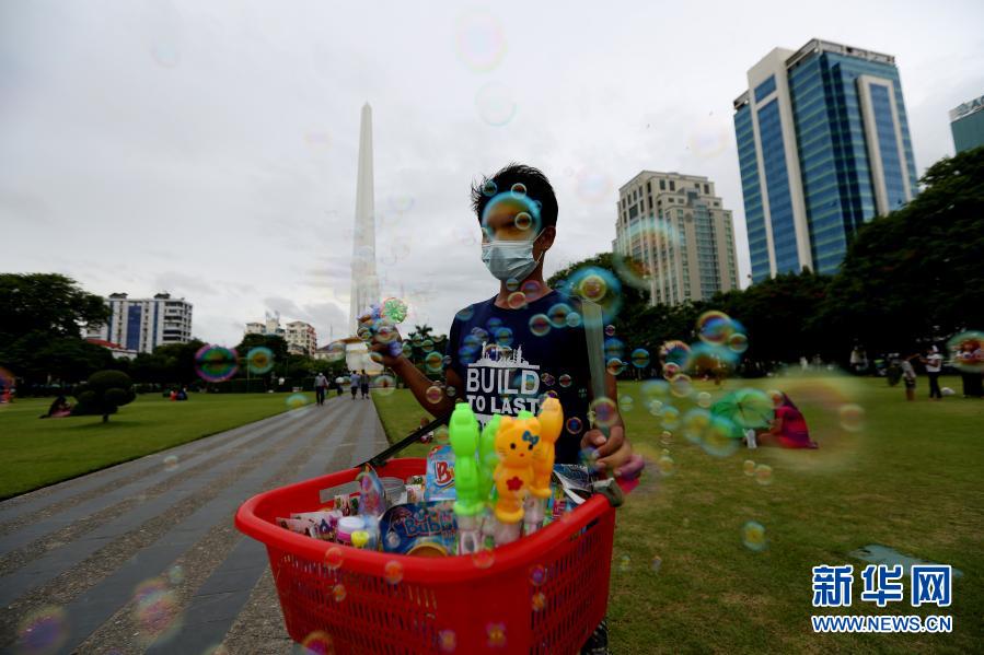 6月17日,一名商贩在缅甸仰光街头贩卖儿童玩具。