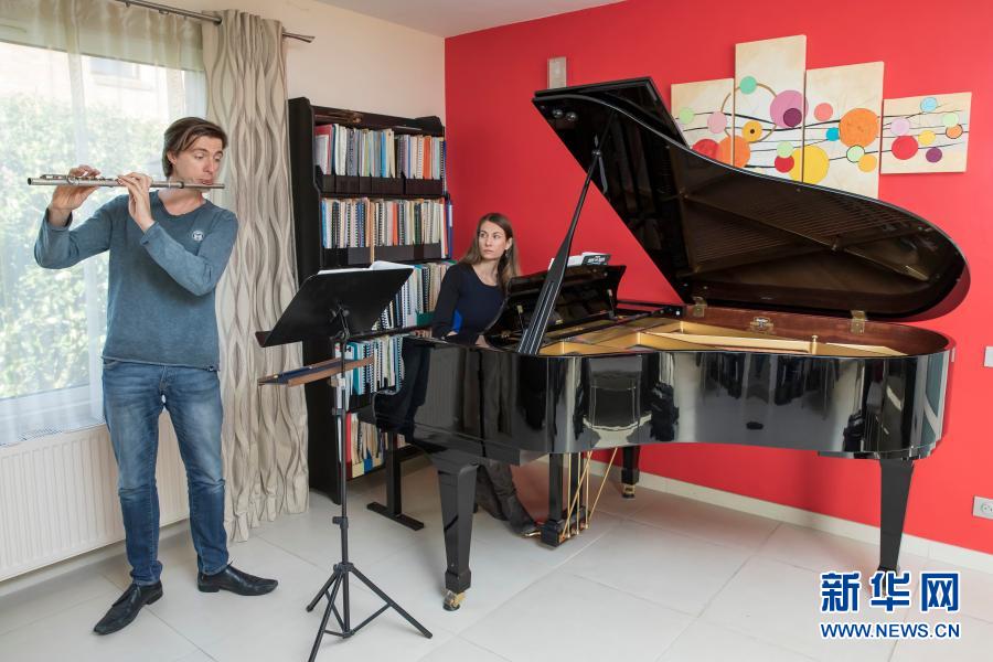 11月7日,在法国康凡昂佩韦勒,安娜和埃玛纽埃尔在家中合奏。