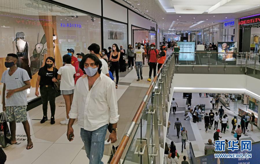 11月27日,人们戴着口罩在南非约翰内斯堡一个商场内购物。
