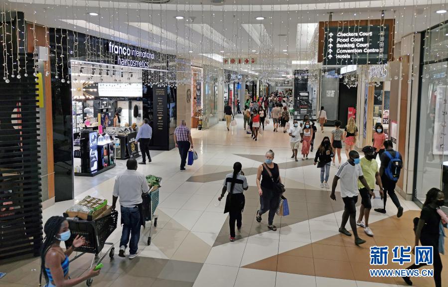 11月27日,人们戴着口罩在南非约翰内斯堡一个商场内购物。