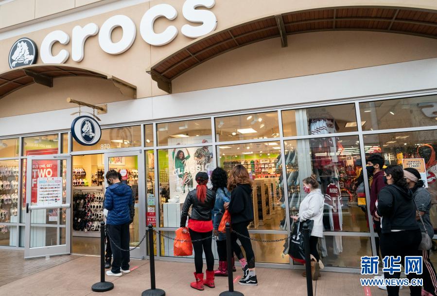 受新冠疫情影响,今年美国“黑色星期五”购物促销日前往商店购物的人数较往年减少。