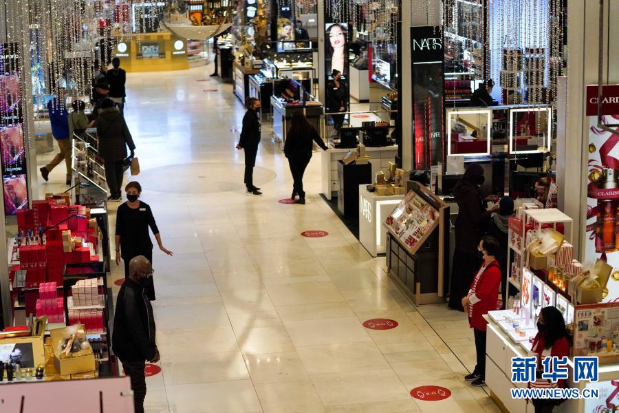 受新冠疫情影响,今年美国“黑色星期五”购物促销日前往商店购物的人数较往年减少。