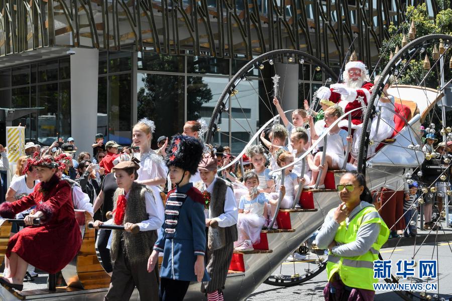 11月28日,人们在新西兰首都惠灵顿市中心参加一年一度的迎圣诞游行活动。新华社记者 郭磊 摄