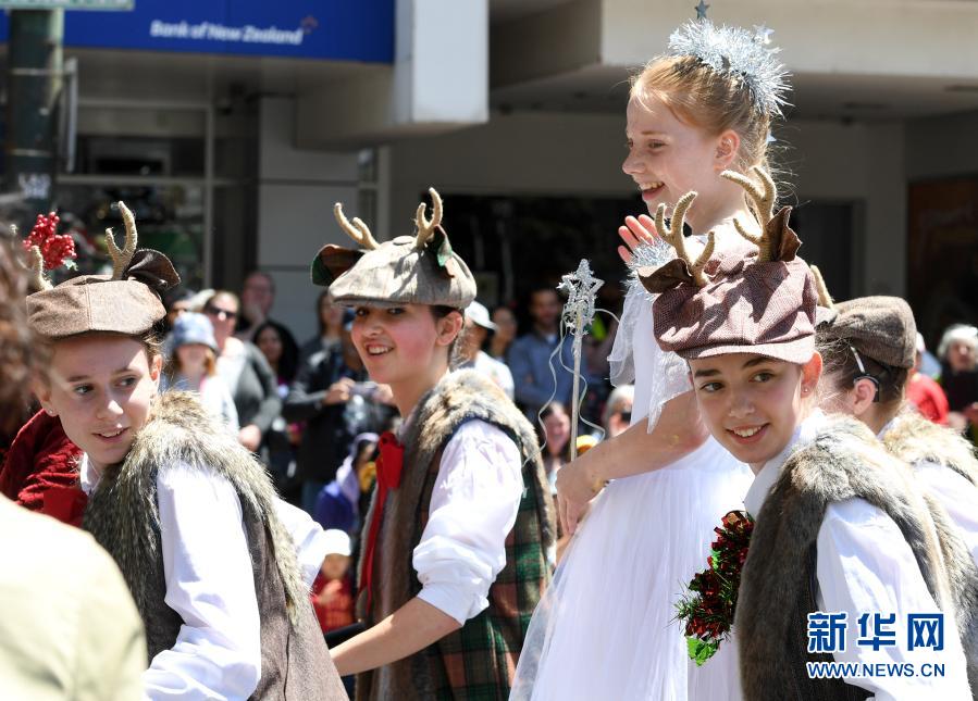 11月28日,人们在新西兰首都惠灵顿市中心参加一年一度的迎圣诞游行活动。新华社记者 郭磊 摄