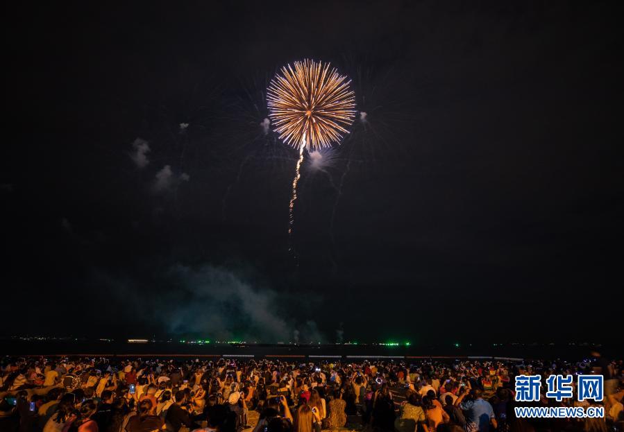 11月27日,游客在泰国芭堤雅的海滩上欣赏烟花表演。泰国芭堤雅于11月27日至28日举行烟花节,吸引众多游客前往观赏。新华社记者 张可任 摄