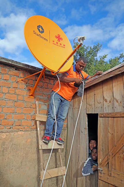 在马达加斯加,来自塔那那利佛市区孤儿院的贾斯丁和伙伴们好奇地张望着接收电视信号的“小锅盖”。“接上这个天线我们就能看电视了,听说电视里有很多世界各地的节目。”