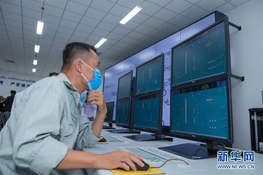 11月30日,在老挝首都万象,一名老挝石油化工股份有限公司员工在中控室工作。