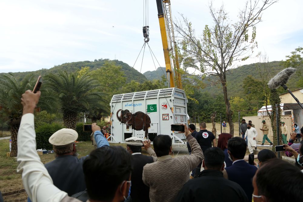 ↑人们在伊斯兰堡送别亚洲象“卡万”